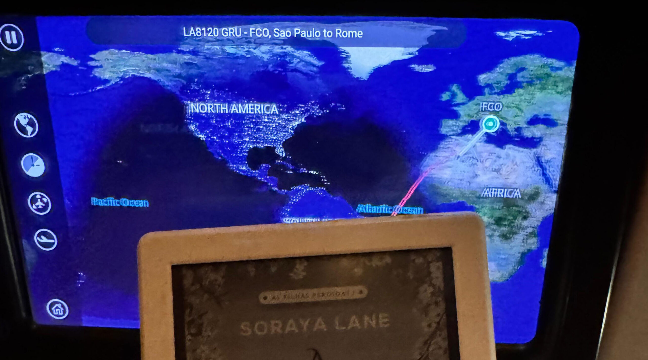 Ah, importante! Por ser uma aeronave mais velha, não tinha entrada de USB na tela, para carregar tinha apenas tomada tradicional. Eu estava com o powerbank então foi tranquilo, mas se você não tem é bom levar o plug de tomada, e tenha um adaptador de tomada universal para evitar dor de cabeça.